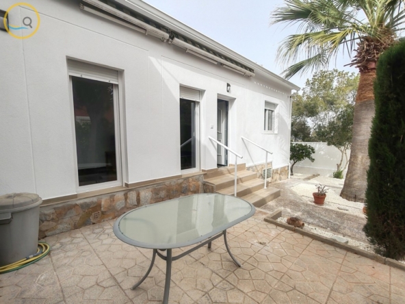 The main house is set on two floors. On the main floor there is a good size lounge which leads out onto a large glazed terrace with views of the swimming pool and garden and an additional open terrace to the side with sun awning. There is an independent kitchen, 2 bedrooms, 1 en-suite shower room and 1 family shower room. In the hall entrance there is a staircase to go downstairs where the is an extra-large bedroom with lounge area, large utility room, large room which is currently used for storage room, and a terrace. The terrace has an independent entrance, allowing the downstairs to be converted into a separate guest area if required.